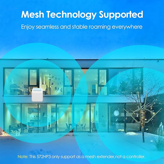 - 【Flexible Installation with PoE & Multi-Mode】Featuring multiple operation modes including Mesh Extender, AP, and Repeater, this device offers versatile deployment. Integrated PoE support allows simplified installation using a single cable for both power and data. Two Gigabit Ethernet ports provide 10x faster speeds than standard Ethernet ports.