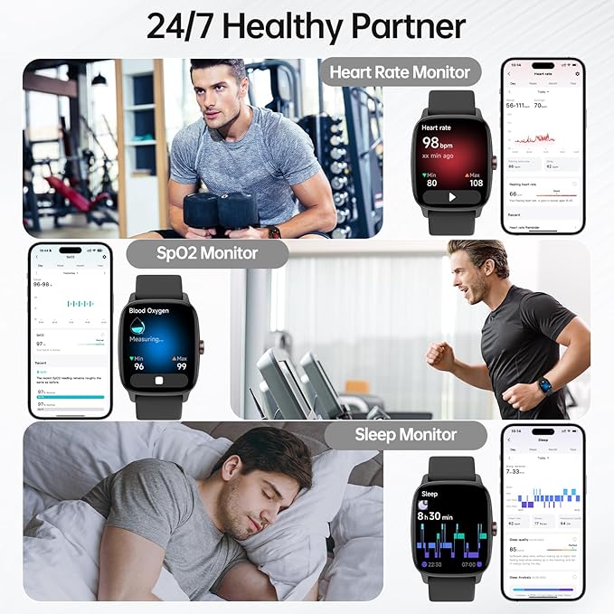 - Fitness Tracker with Smart Notifications: Smartwatches for men with message notification keeps you informed effortlessly, syncs alerts from popular apps - WhatsApp, SMS, Instagram, Facebook, Snapchat, Twitter, Gmail - directly to your wrist. Whether exercising, in a meeting, or on the move, fitness watches ensure real - time reminders. 1.85" colorful touchscreen shows each notification clearly, with gentle vibrations. (Note: Can’t reply via watch)