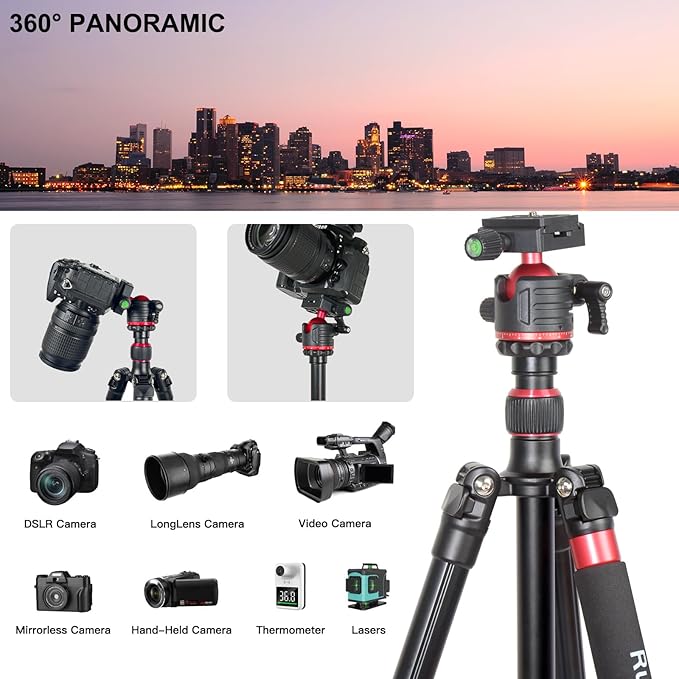 - 2-in-1 Camera Tripod & Monopod--- Aluminum tripod easily converts to a monopod by combining the center column with the detachable tripod leg. To meet more shooting needs and use scenarios