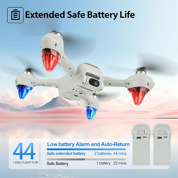 - 【Safe Drone with Auto Return Home】: As a safe GPS drone, it has the safe auto return-home functions, Whether it is lost connection, lost signals or low battery, it will return home safely with GPS positioning to ensure its return reliability, protecting your investment at all times.