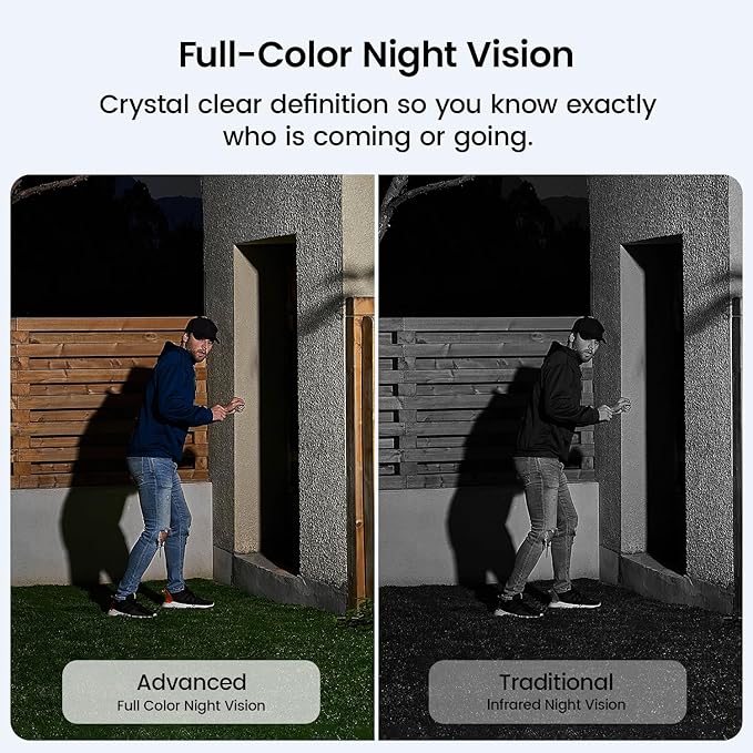 - 4K Ultra HD — Clear Details Day & Night: A true 4K lens with an f/1.6 aperture captures crisp details in any light. The surrounding light band provides balanced brightness for clear, full-color night vision. Day or night, every corner stays visible—so your security never misses a thing.
