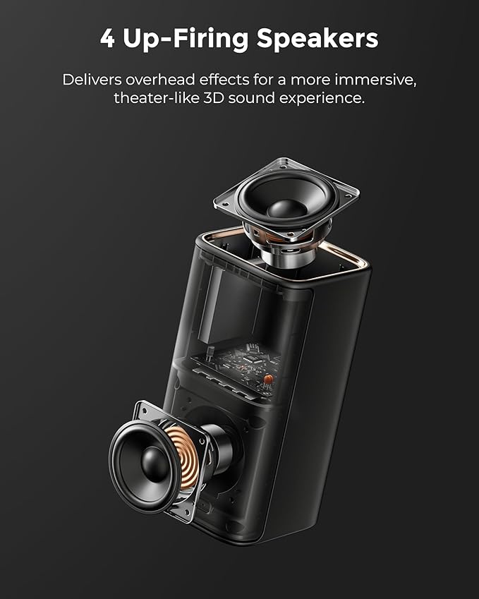 - 7.1.4 Professional Immersive Home Theater Experience: Step into a new dimension of home theater, sound moves freely around you—even above you. Hear rain fall overhead, helicopters hover in the sky, and thunder roll through the room with breathtaking realism. Deep bass you hear and feel. Every rumble and roar pulls you deeper into the story.