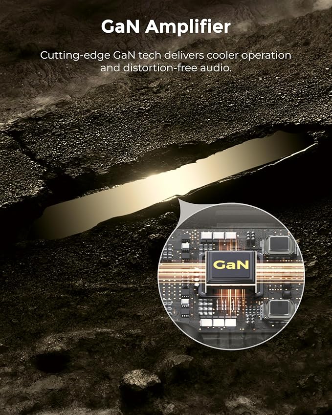 - Industry-Leading GaN Amplifier: Experience up to 98% efficiency and 8x faster response than silicon. The GaN amp ensures low heat, high power, and ultra-clean audio—revealing vivid details, expansive dynamics, and distortion-free sound, even at peak volume. 50% less heat for safer, stable performance.
