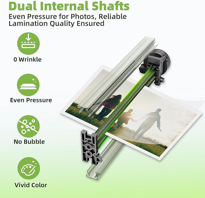 - 【Professional-Grade Laminating】Achieve bubble-free results with our dual-roller system that applies even pressure, preventing wrinkles and ensuring a flawless seal. Your important documents and cherished memories stay protected for years.