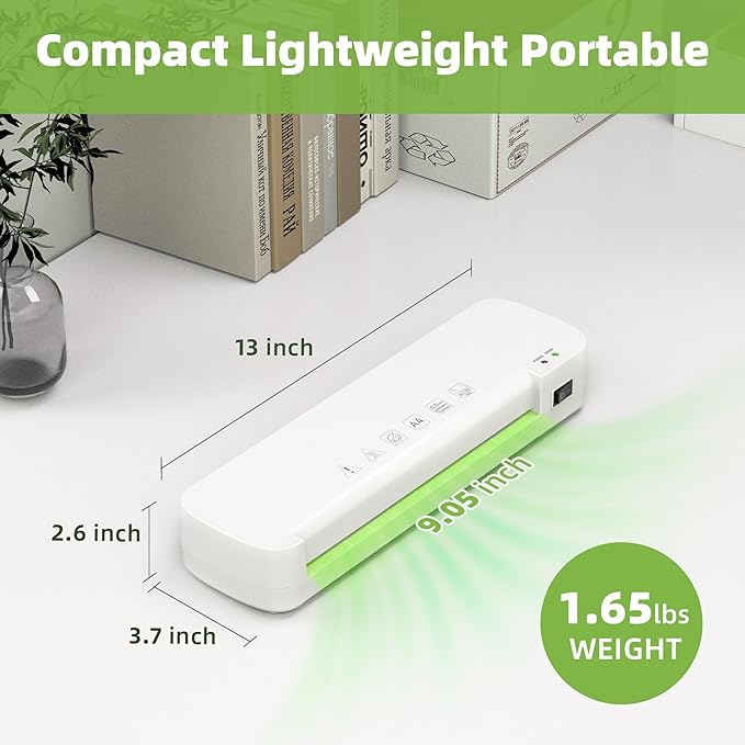 - 【Compact & Portable】At just 9 inches wide and lightweight, our laminator fits anywhere—on your desk, in a classroom, or even in a travel bag. Take it to work, school, or craft sessions without hassle.