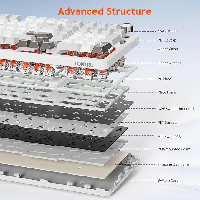 - [PBT Keycaps & Hot-Swap] - Built with durable PBT keycaps and pre-installed linear switches, this keyboard delivers smooth, consistent keystrokes with reduced noise. The hot-swappable design allows effortless customization of switches without soldering. Full N-key rollover ensures every press is accurately registered, perfect for fast-paced gaming or typing.