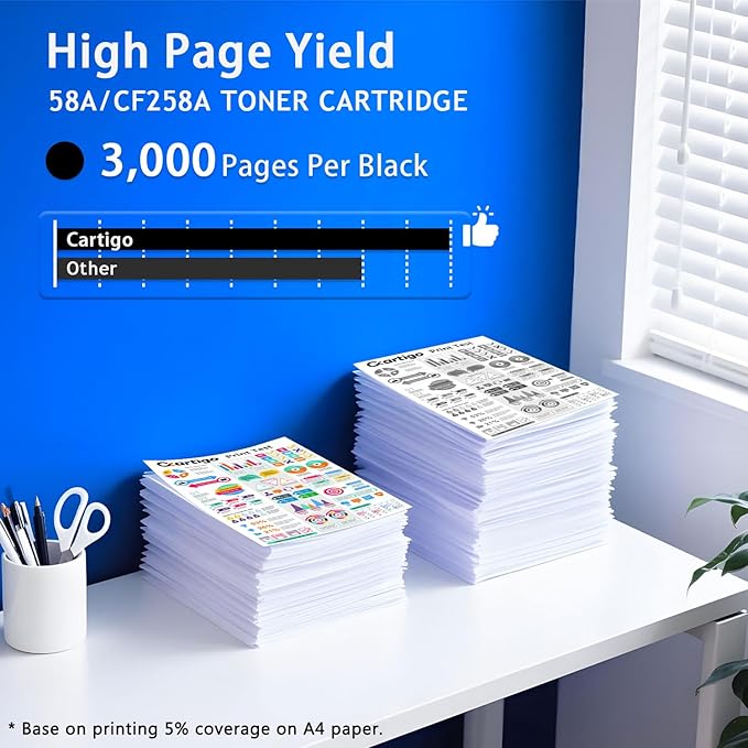 - High Page Yield : Up to 3,000 pages per 58A CF258A Black Toner Cartridge (at 5% Coverage, Letter/A4)