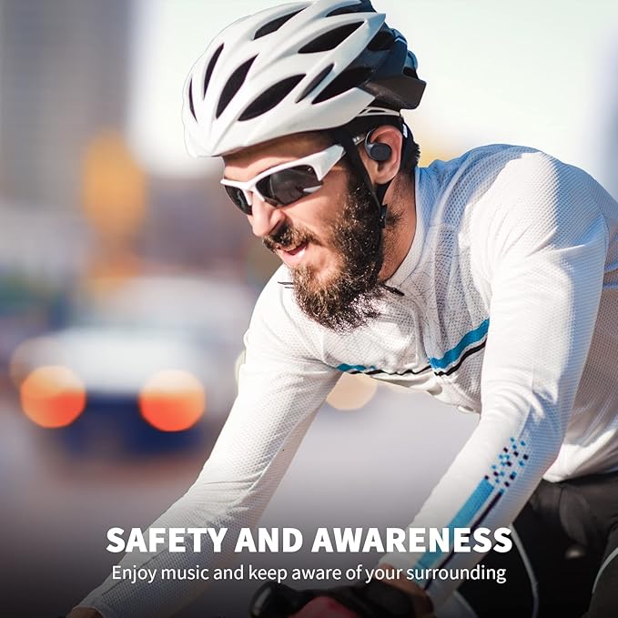 - 【Be Aware of Surroundings】- Bone conduction earbuds allow ambient sounds to reach the ears, enabling wearers to stay aware of their surroundings. With these sports Bone Conduction earbuds, you can hear external sounds clearly while maintaining comfort. This Bluetooth headphones feature a unique shape that doesn't plug into the ear canal, ensuring prolonged comfort during wear.