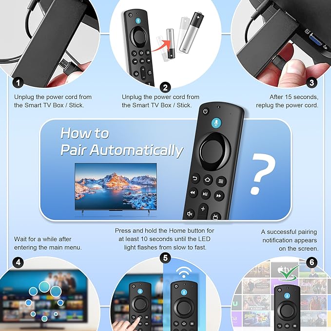 - Easy to Pair: First you need to remove stick from TV and power from stick. Then reattach power and stick back in TV. Then Press the Home button about 10-15 seconds until the LED indicator starts to rapidly flash amber for 10 seconds, then your remote will automatically pair with your device