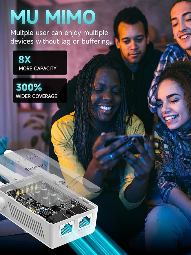 - EXPERIENCE UNMATCHED STABILITY AND ULTRA-FAST SPEED: Our latest WiFi extender is powered by a high-performance CPU for fast, stable speeds, and its Intelligent biochip core processor reduces latency and buffering for a seamless online experience. Whether you're streaming HD content, gaming, browsing, or video chatting, you’ll enjoy smooth, uninterrupted connectivity. With the advanced Bionic Chip and four high-gain external antennas, this device ensures fast internet over long distances and reliable wireless access for your whole family.