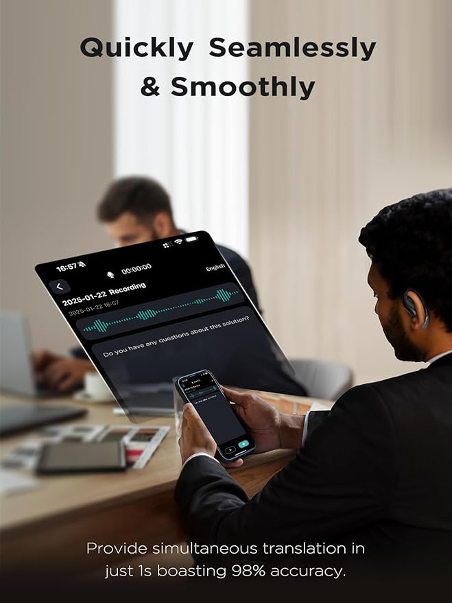 - 【3-in-1 Versatility & Premium Sound Quality】 One device, three roles. Toggle between real-time translator, stereo music earbuds, and HD phone headset with a single tap. A 14.2 mm titanium-coated diaphragm delivers punchy bass, balanced mids, and crystal-clear highs while an open-fit design lets ambient sounds in—so you stay aware of traffic or boarding calls when you’re on the move.