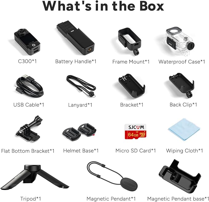 SJCAM C300 Vlogging Combo, 4K Pocket Action Camera,7Hour Power,6-Axis Stabilization,Dual-Touch Screen 154° Wide FOV Video Body Camera,Waterproof,Live Streaming,with Accessories Kits,64G Card,Black