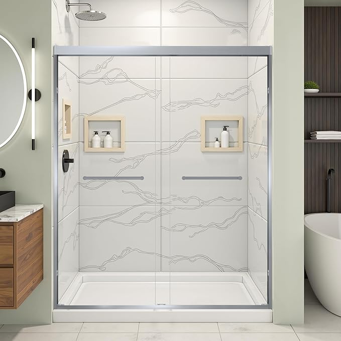 - 📏 Tailor-Made to fit Any Bathroom: Designed to solve the hassle of mismatched installation, this shower door offers flexible width adjustment from 56 inches to 60 inches (can be easily cut) to seamlessly fit most standard bathroom sizes. Perfectly fit your space without the hassle of mismatched installation.