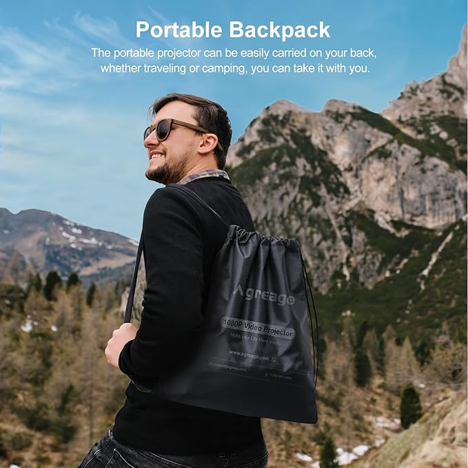- Sleek Design & Ready for Any Occasion: Designed with a modern, compact look and comes with a handy drawstring carry bag—perfect for on-the-go fun. Whether it’s movie night in the backyard, RV camping, garage karaoke, or even yoga or online classes, this projector supports tabletop, ceiling, wall, and tripod mounting to fit your setup.