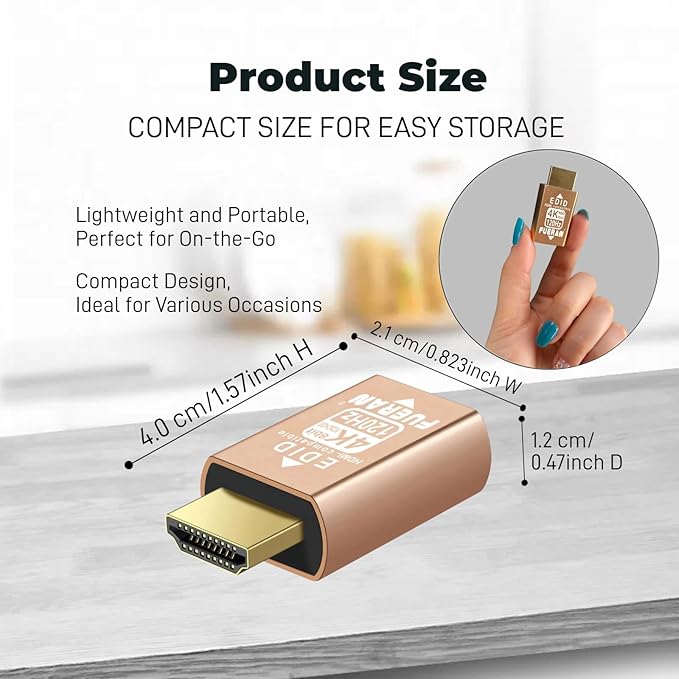 - New Generation HDMI 2.1compatible Headless Adapter - 4K@120HZ HDR-hdmi dummy plug Can enable the PC to enable the GPU to create a virtual display to perform tasks,Simulate high resolution for remote control,Up to 4K@60HZ/120HZ, compatible with 1440@60HZ/120HZ,1080P@60HZ/120HZ, etc.(Notice:The graphics card interface must support HDMI 2.1 version to achieve 4K/120HZ refresh rate)