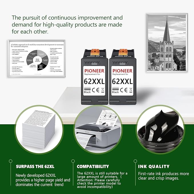 - Reliable Quality: Equipped with the latest chips and premium nozzle, our 62xxl ink cartridges black for printer ensure high compatibility with your printer and stable printing quality without paper jam or ink leakage