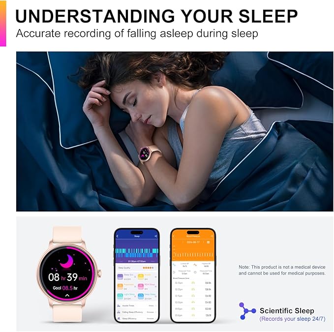 - 24-Hour Health Monitoring: The smartwatch adopts advanced sensors and accurately monitors and records your health data, providing a comprehensive analysis of sleep quality. Note: it is not recommended to shower or swim with the watch.