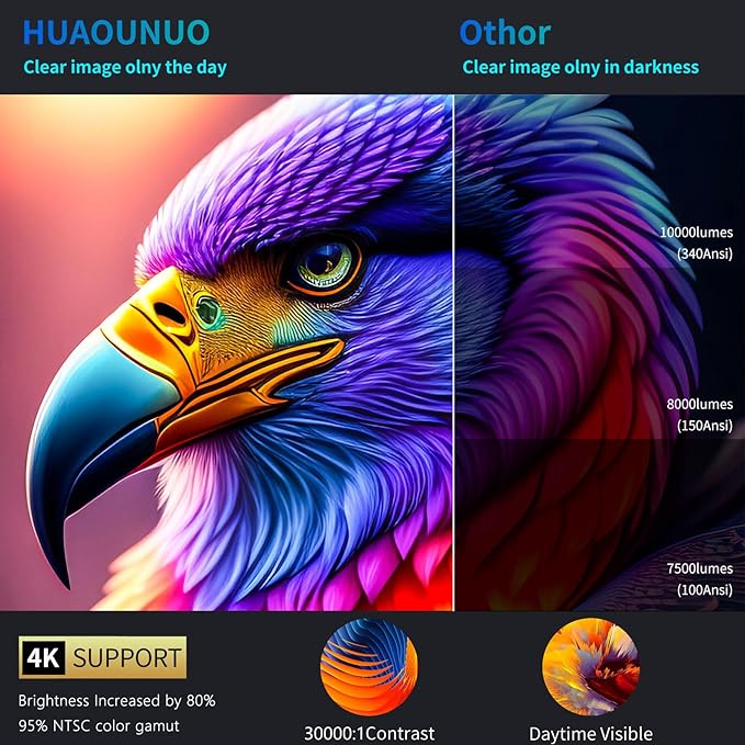 - 【Detail-first Visual Feast - 4K Projector and & Max 500"Screen】projector delivers 4K video decoding for stunning detail on your 60" - 500" screen. Experience peak visual quality .Precision-made glass lenses with superior optical performance and high purity provide impeccably even image distribution, eliminating any trace of edge blur. It improves image brightness, clarity and rich color spectrum, resulting in 20,000 Lux color fidelity. Tailored to perform well in both indoor and outdoor environments, it is a testament to uncompromising quality and performance