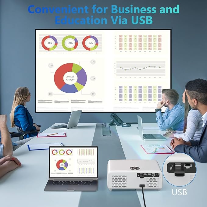 - 【No More Black dot & Presentation via USB】①➤Designed with a fully sealed optical core,this LED video projector is not easy to enter dust, which effectively reduces screen black spots and image quality loss.②➤The projector supports reading ppt/xlsx/docx files via USB.③➤We provide life-long professional technical support and customer service. Any questions, Please let us know at any time.
